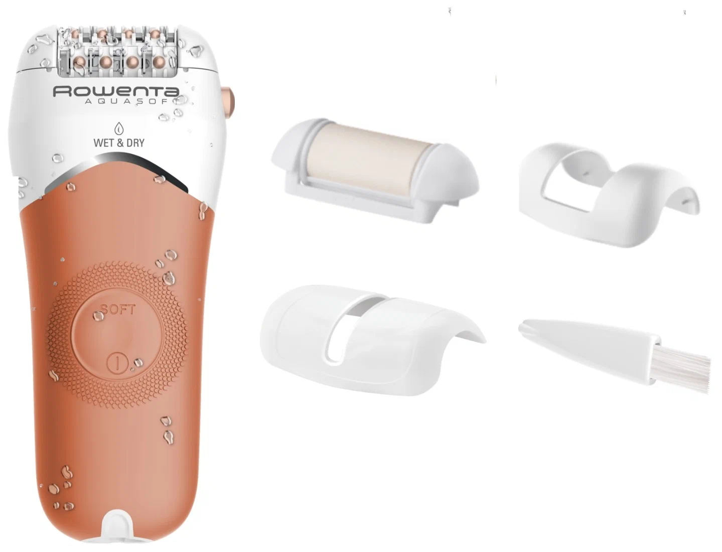 Удаление волос не должно быть неприятным и вызывать раздражение кожи! Эпилятор Aquasoft оснащен запатентованной технологией против раздражения Anti-Irritation – благодаря эксклюзивной мягкой поверхности насадки устройство бережно удаляет волосы, не вызывая раздражения. Дополнительный бережный режим работы на низкой скорости обеспечивает более деликатную эпиляцию. Эпилятор Aquasoft эффективно удаляет даже самые короткие волосы (0,5 мм), не ломая их, а благодаря элегантному, эргономичному и на 100% водонепроницаемому корпусу устройство удобно держать в руке и можно использовать под водой. Уникальная технология Skin Respect в виде массажных шариков снижает чувствительность кожи во время эпиляции, а оптимальная скорость вращения насадки позволяет повысить эффективность эпиляции. В комплект входят отшелушивающая насадка, аксессуары для эпиляции на чувствительных участках кожи и для более точного удаления волос.